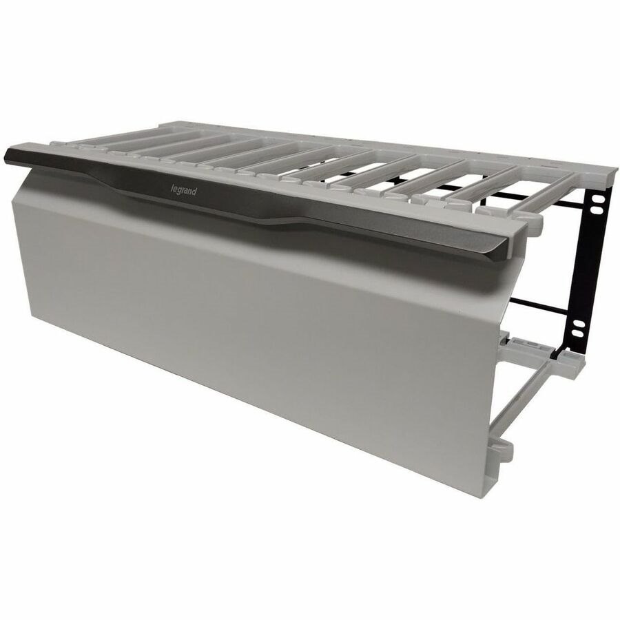 Horizontal cable managers are available in 2RU and 4RU sizes. Fingers begin 3/4 in from the face of rack to provide bend limitation for cables, protecting cables, equipment and network performance. Included hinged cover mounts with six heavy duty clips allow them to be